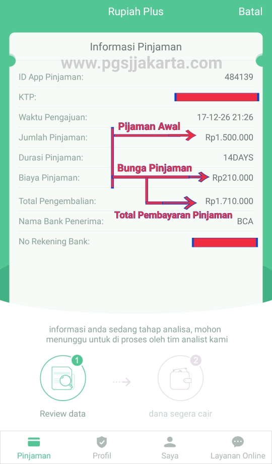 Jika semua data yang Anda masukan sudah benar, maka Anda cukup menunggu tim analisis Rupiah Plus meninjau data yang Anda berikan selama kurang dari satu jam (Lihat Gambar)